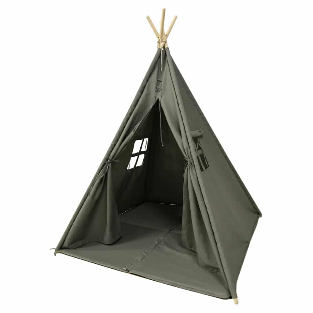 De Alba Tipi Tent van Sunny is een variant van een wigwam en zeer geschikt om kinderen een lekker plekje te geven om in te spelen of lekker te relaxen en een boekje in te lezen. Deze mooie grijs-kleurige Tipi Tent zal een ware eyecatcher zijn in iedere baby-, peuter- en kinderkamer. Door het grote opvouwbare kussen is de Alba ideaal voor zelfs de allerkleinsten. Daarnaast houdt het kussen je kinderen schoon wanneer ze de speeltent buiten willen gebruiken, zo is de Alba Tipi Tent multi-inzetbaar! De tent heeft twee ramen aan de zijkanten welke voorzien zijn van een gordijntje die aan de buitenkant geopend kunnen worden voor meer natuurlijk licht. Als je kinderen verstoppertje spelen kunnen ze de ramen en voorkant van de tent snel dicht doen om niet gezien te worden. Als uitgespeeld zijn kan je de Tipi gemakkelijk bij elkaar pakken, zodat je de Tipi kan meenemen of opbergen.