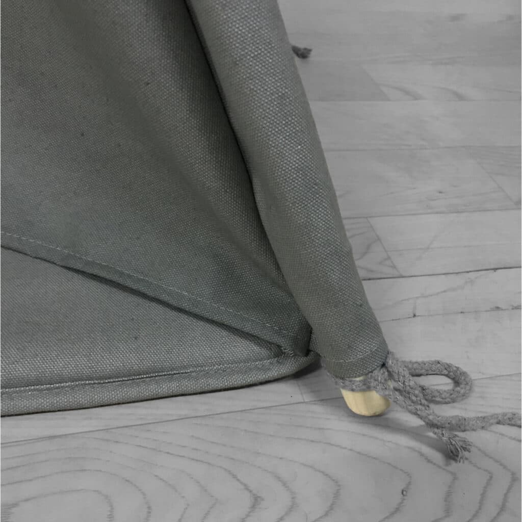 De Alba Tipi Tent is gemaakt van het beste materiaal. Zo hoeven jij en je kinderen zich alleen nog maar bezig te houden met spelen en avonturen beleven. De tent bestaat uit een natuurlijk, extra veilig, ademend katoenen canvas met een stevige constructie. De Tipi is eenvoudig te monteren door de 3-delige FSC 100% houten palen (Ø 2,4 cm) aan elkaar te maken doormiddel van een kunststof tussenstuk. Plaats de palen in de openingen van de canvas en bind de palen aan de bovenkant bij elkaar met het meegeleverde koord. Plaats de Tipi over het kussen en bindt deze vast aan de palen.