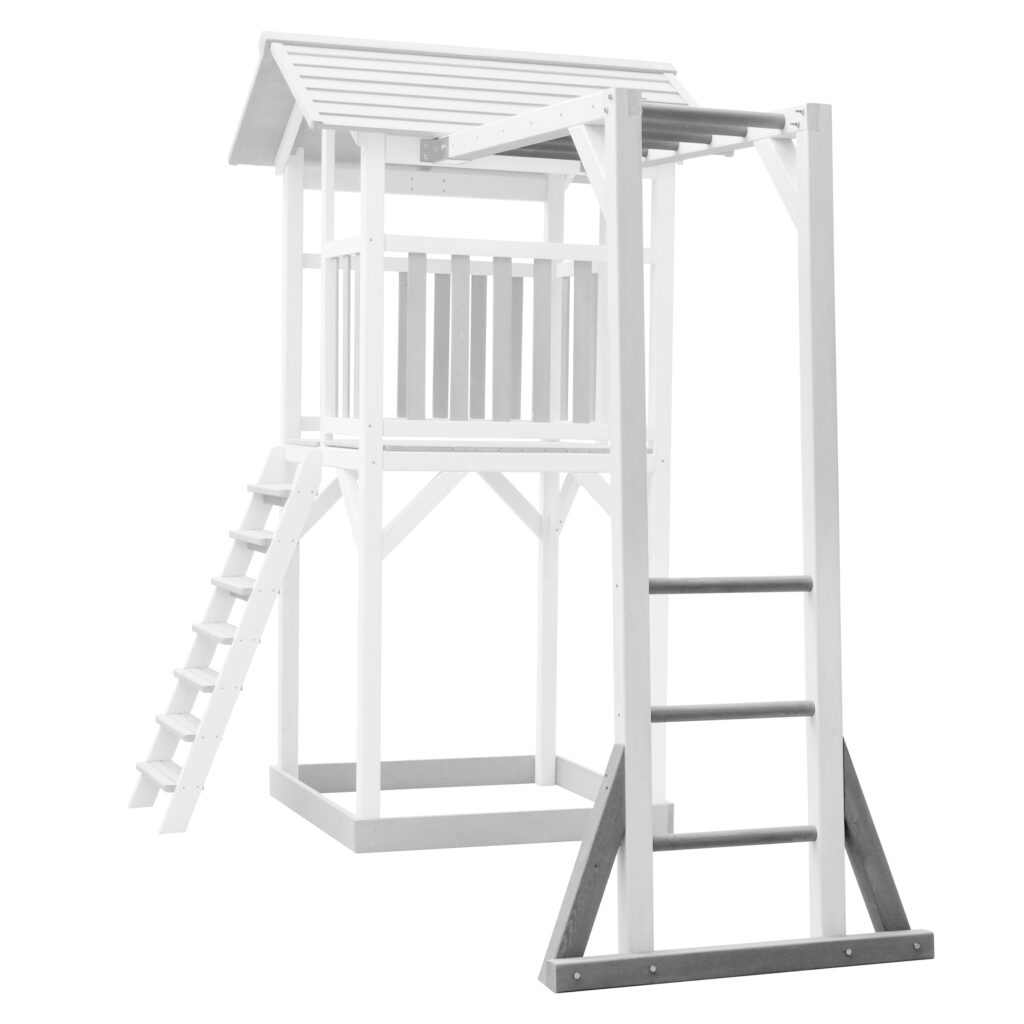 Kinderen zullen het heerlijk vinden om te klimmen en slingeren op het Beach Tower Klimrek Grijs/wit van AXI.