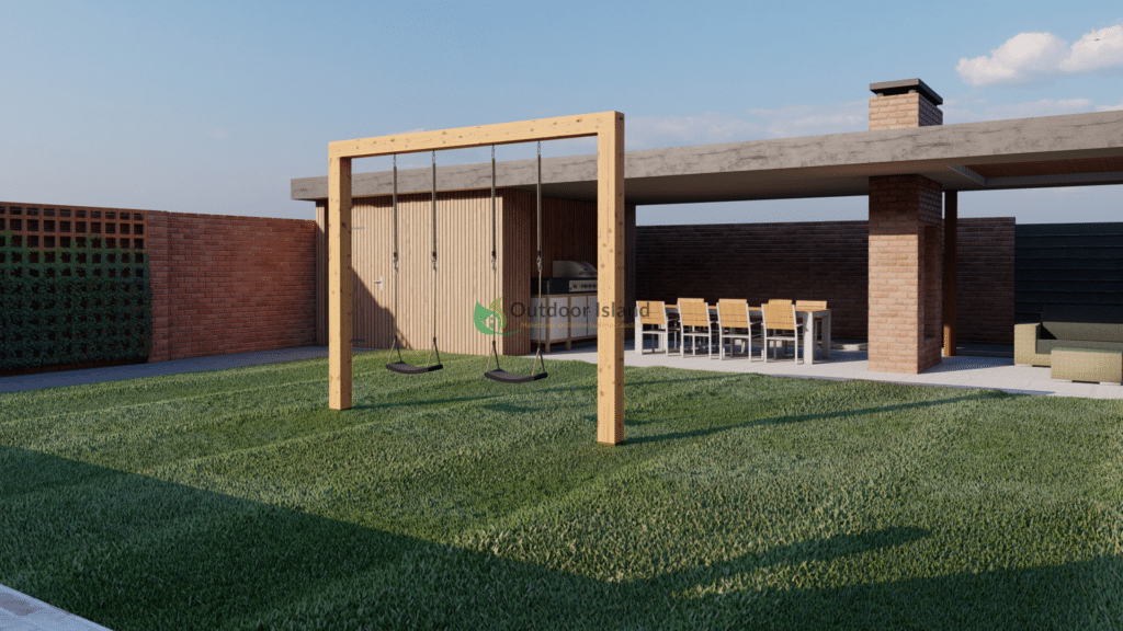 Schommel Jane van Outdoor Island is opgebouwd uit geschaafd, gedroogd en 95% kernvrij Douglashout (splintervrij). Strakker dan de schommel Jane vind je ze niet. Hij valt bijna niet op in de tuin.