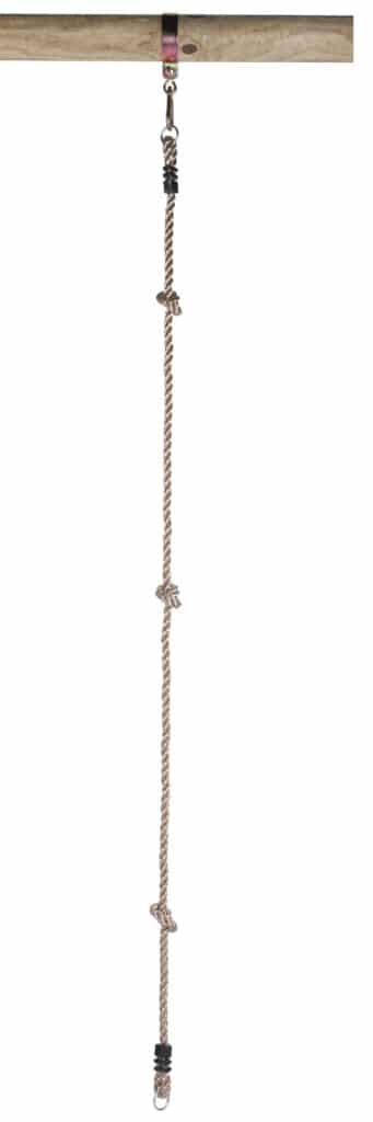 Knopentouw met drie knopen en aan de boven- en onderkant een ring. Eenvoudig te monteren aan één schommelhaak (exclusief).