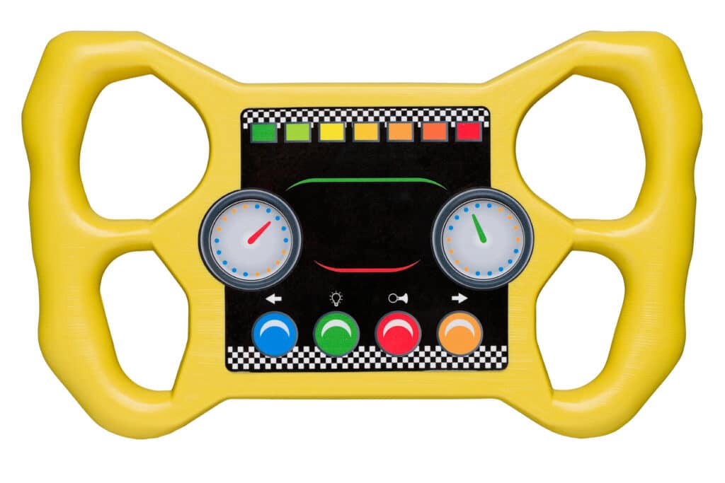 Racestuur gemaakt van kunststof. Compleet geleverd met sticker.