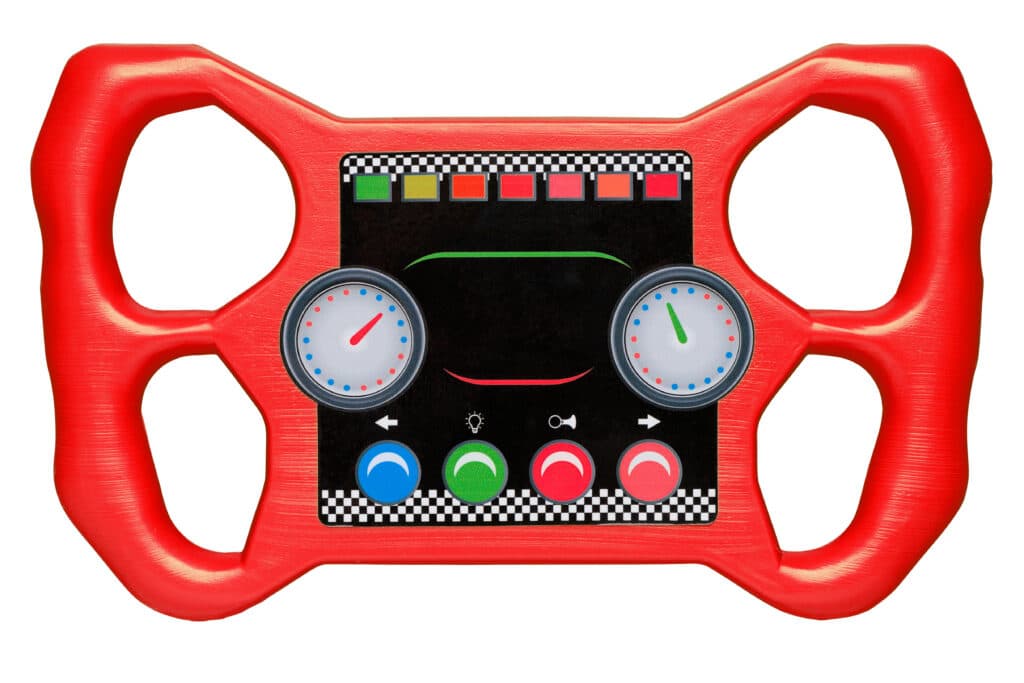 Racestuur gemaakt van kunststof. Compleet geleverd met sticker.