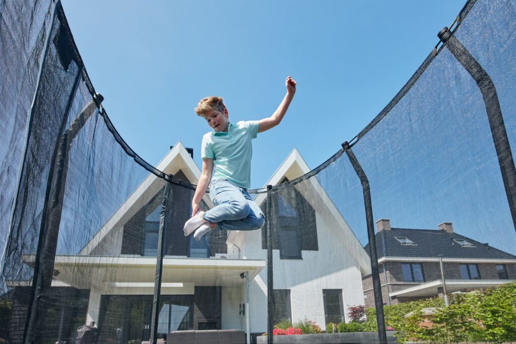 De veiligheidsrand van de Premium Ground is uitgerust met een geïntegreerd luchtstroom systeem, zodat de lucht die onder de springmat stroomt zich optimaal kan verplaatsen. Deze goede luchtcirculatie zorgt voor een geweldige springervaring. Bovendien beschikt de veiligheidsrand over extra dik PVC, voor de beste bescherming. De rand kan door middel van de bijgeleverde verankering set aan de grond worden bevestigd. De robuuste constructie verzekert een stevige basis en is volledig gegalvaniseerd, van binnen en buiten. Doordat de trampoline slechts 21,5 cm boven de grond staat, profiteer je van een veilige en lage op- en afstap. Kinderen kunnen de trampoline dus zonder moeite en risico betreden.
