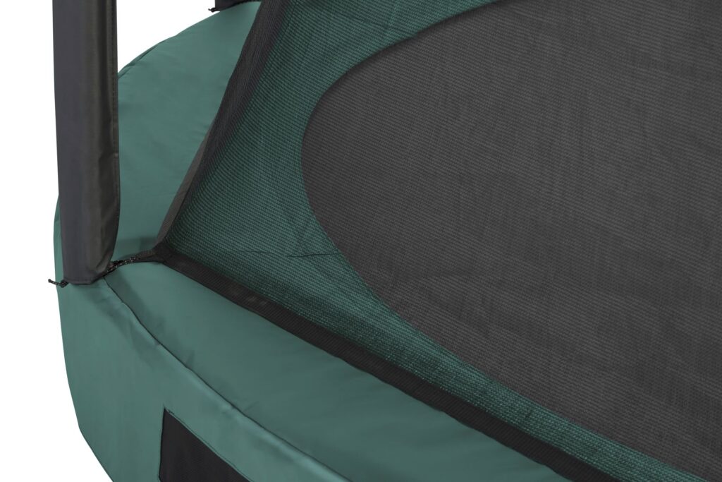 De veiligheidsrand van de Premium Ground is uitgerust met een geïntegreerd luchtstroom systeem, zodat de lucht die onder de springmat stroomt zich optimaal kan verplaatsen. Deze goede luchtcirculatie zorgt voor een geweldige springervaring. Bovendien beschikt de veiligheidsrand over extra dik PVC, voor de beste bescherming. De rand kan door middel van de bijgeleverde verankering set aan de grond worden bevestigd. De robuuste constructie verzekert een stevige basis en is volledig gegalvaniseerd, van binnen en buiten. Doordat de trampoline slechts 21,5 cm boven de grond staat, profiteer je van een veilige en lage op- en afstap. Kinderen kunnen de trampoline dus zonder moeite en risico betreden.