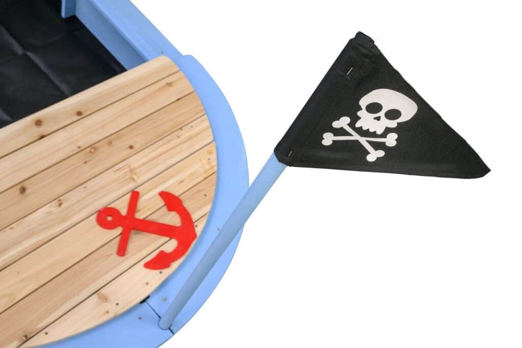 Zandbak Kapitein van SwingKing is een stoere zandbak in de vorm van een boot, compleet met een stuur en piratenvlag. Gemaakt van gekleurd FSC®-hout, waardoor het duurzaam en onderhoudsvriendelijk is – geen extra behandeling nodig!